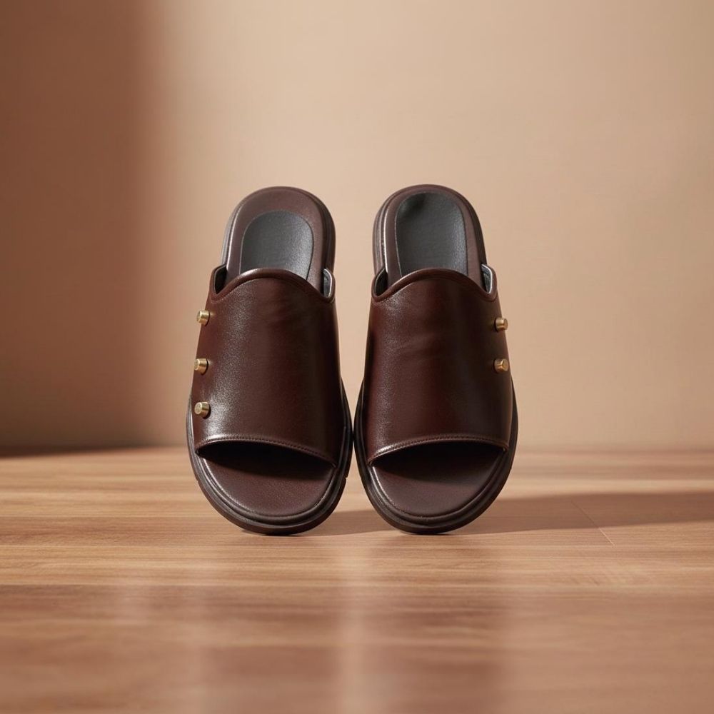 Men Slippers with Premium Leather Upper – Strong, in vogue, and long-lasting